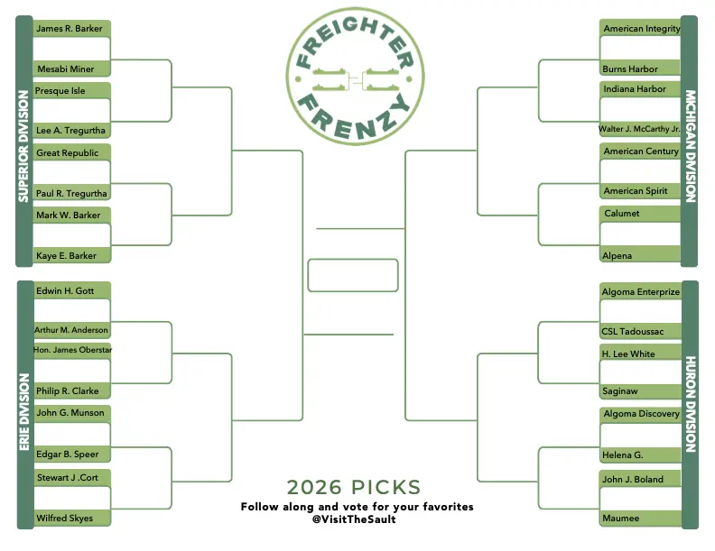 It’s time once again for the most exciting Great Lakes showdown of the season—Freighter Frenzy 2025! This March, our social media followers will decide which mighty laker sails to victory in a bracket-style tournament celebrating the biggest, boldest, and best freighters on the lakes.